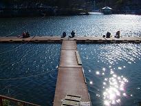 | 1月9日 | 本日は千葉県のわかさぎ釣りポイント高滝湖に行ってまいりました。 朝5:00に到着、ちと早すぎましたが、何せ一番近くの駐車場そんなに大きく ないので、これで良し!!でも既に2〜3台の車はあります。 6時前、やっと管理棟が開き、券の販売です。無事購入、 準備を整え桟橋に向かいます、ライフジャケットとオールは自分で取りに 行きます。ボートにすべてを乗せさて出発です。 今回のポイントは加茂橋と銅像の間にある、係留ポイントのそばの ブイに付けてみました。水深は5m程度のとこです。 竿は2本出しで定番の底釣りからスタートです。 早速のあたりです、両方の竿にあたりはきます、大忙し!! このまま順調だったのは8時くらいまで、ここまで50匹近くの釣果です。 これ以降、わかさぎの回遊がくるまでは釣れない状態に突入です。 それと周りが騒がしくなってきたので、シビアな状態に、、 そこで試したのは、底釣りのふかせ釣りです。この釣りが当たったようで 12時までには1束を超えました!あと少し数量増しをして本日の 釣りは終了。 さて本日の釣果は120匹でした。TOPが300位ですから早上がりを考えれば 良しとしましょう!! 高滝湖わかさぎ釣り基本情報 ボート料金 1人 2000円 2人 2500円 釣り券 630円 釣り時間 11月〜2月 AM6:00〜PM4:30 3月 AM6:00〜PM5:00 竿は1人2本まで |
