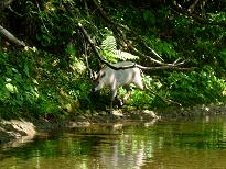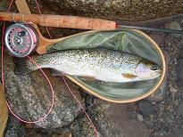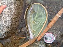 | 6月6〜7日 | 本日は山形県寒河江川上流、大井沢地区に行ってまいりました。 C&Rの設置されている区間に行ってきました。 1泊2日ですので、それほど多くのところを探れませんでしたが 入梅前で結構楽しめたと思います。 例年よりも残雪は多く、川原にも1部残っておりました。 写真は掲載しておりませんが、、、、 月山は相変わらずの残雪です、下のドライブインではスキーを 積んだ車も見れましたので、まだまだできるのでしょう! 今年は動物に遭遇です!!日本カモシカです。 かなり浅いところでイワナを発見して 低姿勢のままキャスティングをしていた時に、、、 視界の先(20m)の流れ込みから体長60cm位の蛇が流れ落ちてきました、 一瞬ドキッとしましたが、距離があるし大丈夫と思った、 次の瞬間それを追うように日本カモシカが現れました。 まるで蛇を追い掛け回しているように、、、 私の狙っているライズを消しただけではなく、ずんずん近づいてきます。 俺はここにいるんだぞ!!と言っても分かってもらえません。 更に5m位に近づいた対岸でやっと目が合いました。 しばらくの沈黙です、、、 私には下がる事ができませんでしたので、何とか気がついてもらえて 退散していただきました。(ほっ、) で結局ライズは釣れませんでしたけど、、残念。 土日でかなりいじめられたらしく、全然ドライに反応してくれません。 まだまだ修行が足り事は分かっておりますが、悔しいですね〜。 下の2匹は同じ場所から出ました、両方とも30cm程度ですが イワナが先に釣れて、その後狙い通りもう一匹隠れてました。 結局はこの2匹で終わってしまいましたが、満足して終了です。 いつもながら、茂吉そば最高!! |